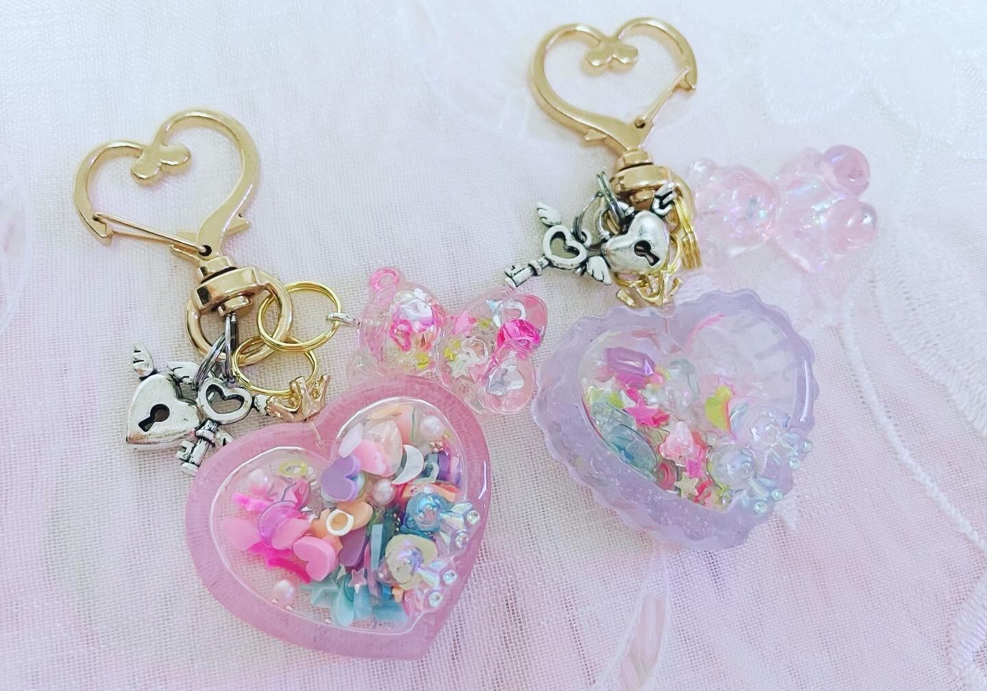 薄紫のハートとくまちゃんのキーホルダー