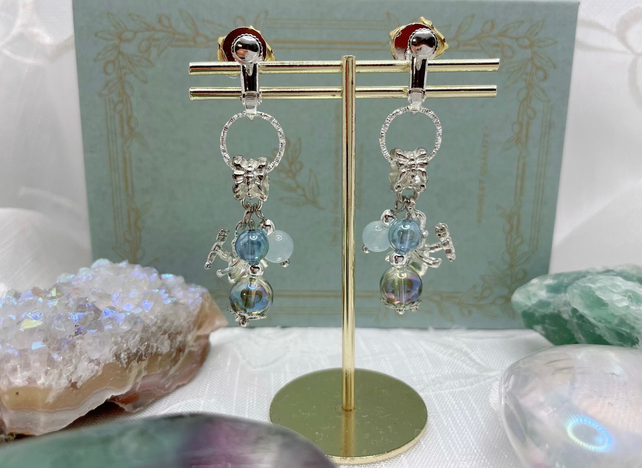 イヤリング金具部分のビジューは天然石ではないです。天使がたくさんやってくるイメージで作りました。