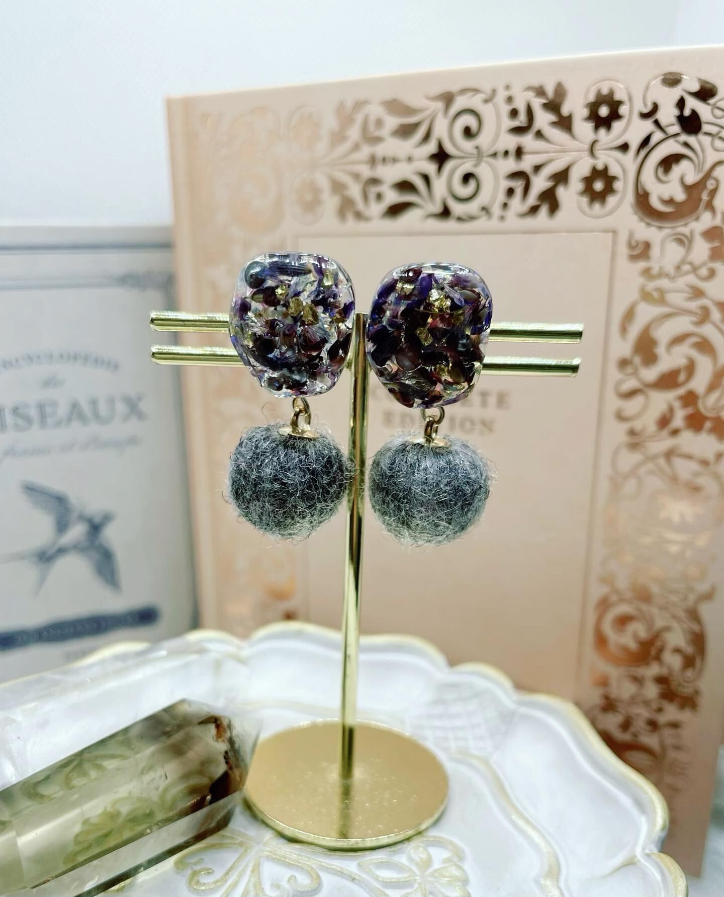 ブラウンと金パーツ、紫のお花とグレーポンポン、ブルーのお花とグレーポンポン どれかご指定ください。