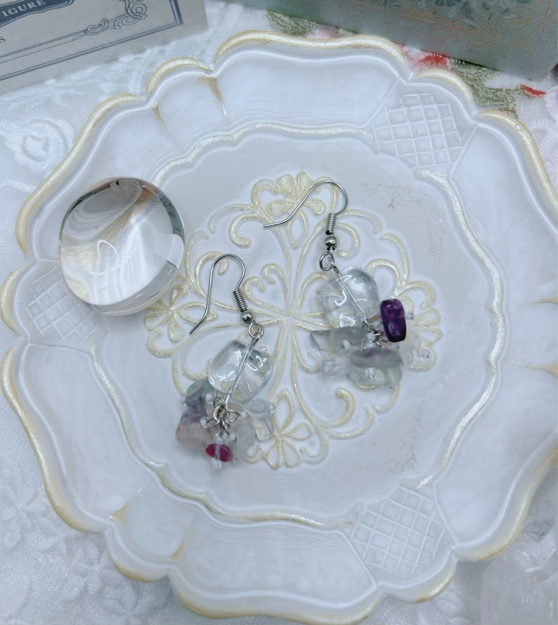 石とオーロラビーズの耳飾り♡